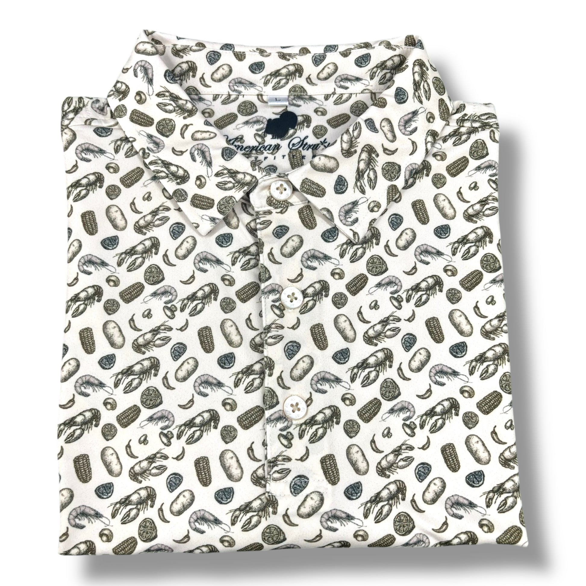 Inspired by Southern cookouts and time-honored tradition, the Low Country Boil Polo features a custom boil-inspired print that nods to shrimp pots, crawfish, and good times shared around the table.
